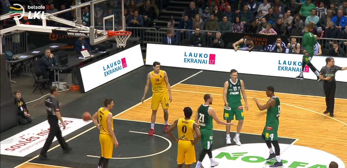 Reklama sporto varžybų metu – tai puikus būdas būti matomiems gausaus skaičiaus sporto gerbėjų. Reklama per rungtynes transliuojama aukštos kokybės LED ekranuose-juostose, kurie išdėstyti ties aikštelės ribomis per visą ilgį. Tai gali būti daugiau nei 32 metrų ilgio juosta, kurioje reklamuojama įmonė, logotipas, paslauga ar kt. tikrai neliks nepastebėti.